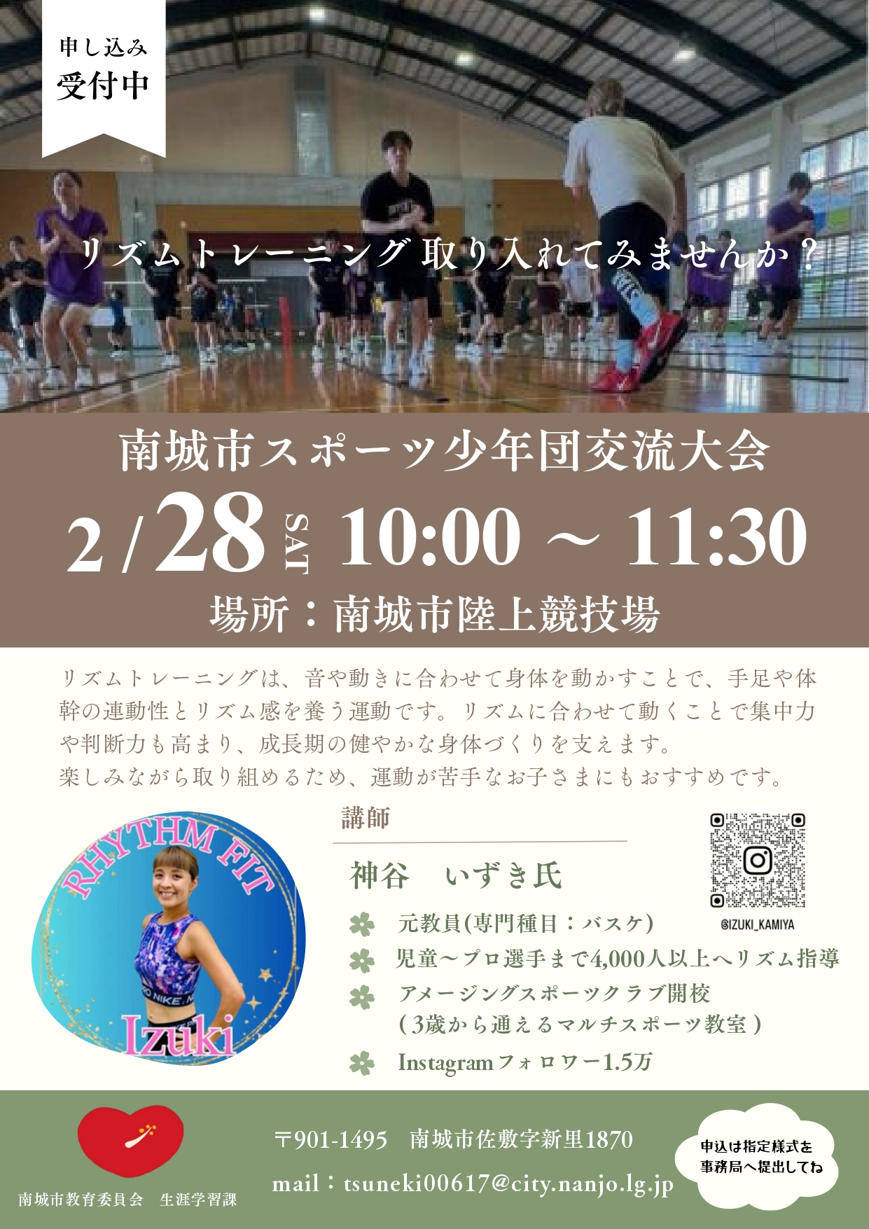 ぜひ多くのスポーツ少年団単位団(団員、指導者及び保護者含め)のご参加をお待ちしております。