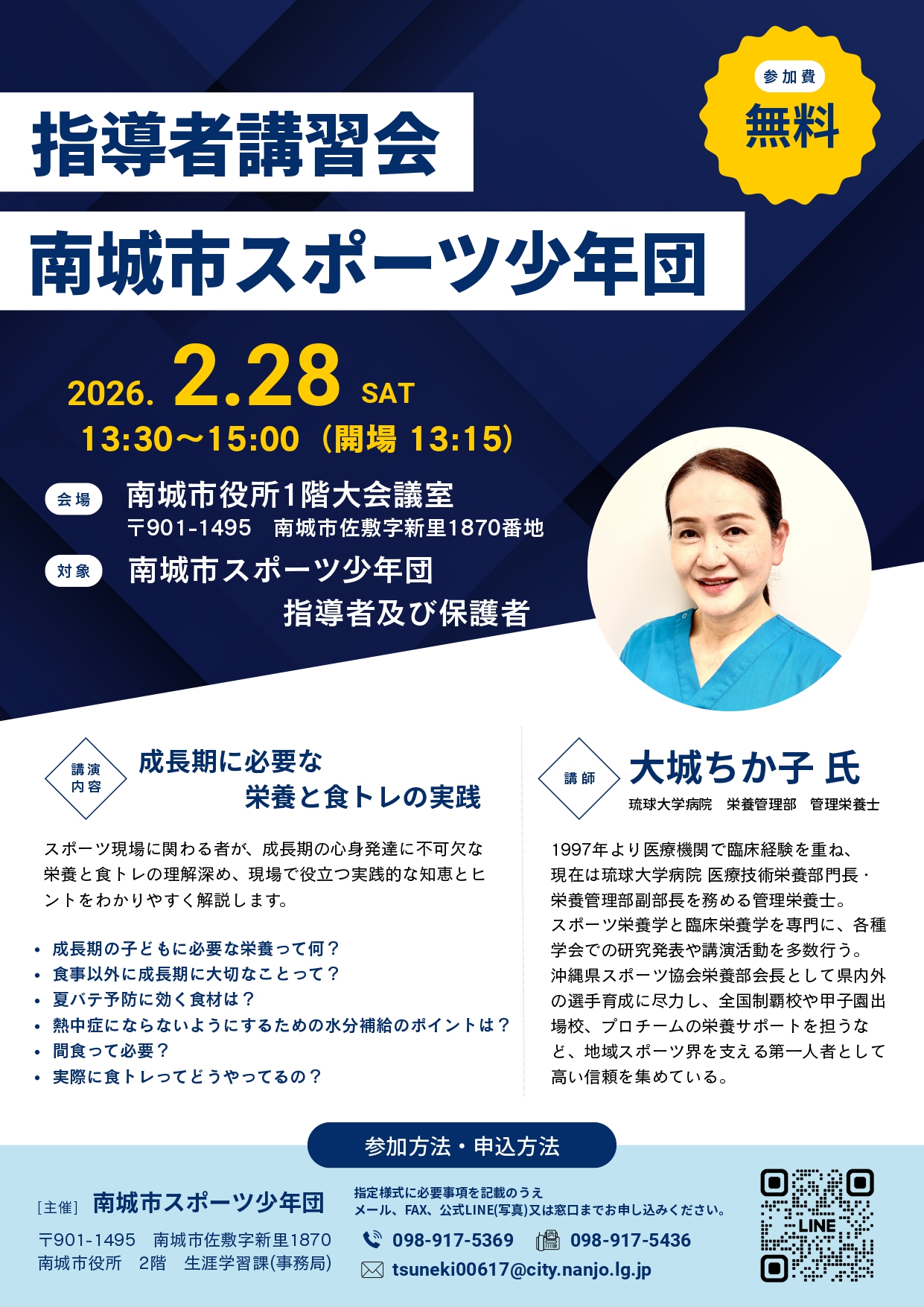 日頃より、南城市のスポーツ振興及び青少年健全育成に際しましてご理解とご協力を賜り感謝いたします。