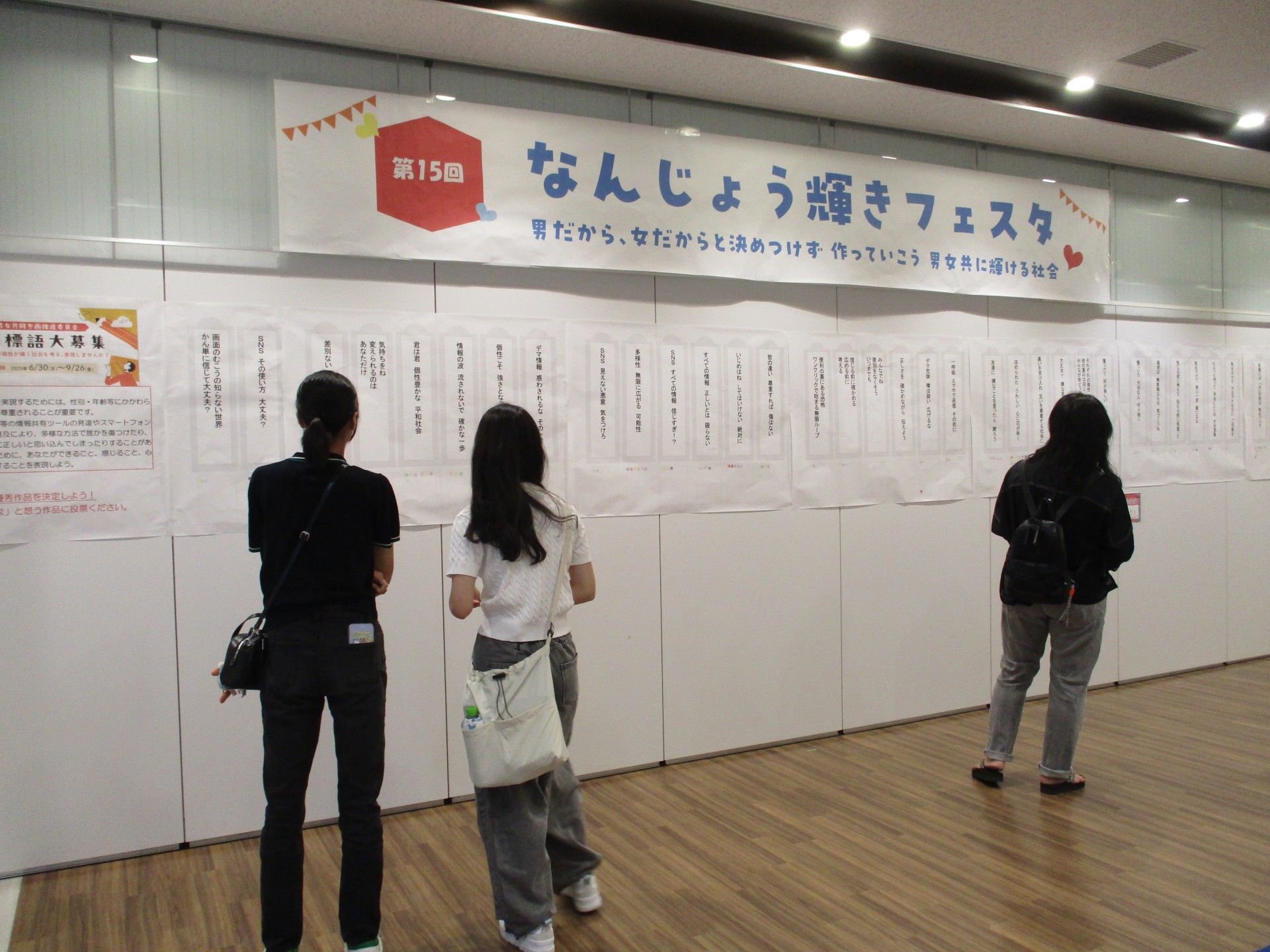 一人ひとりの個性が輝く社会を目指し、南城市では毎年「なんじょう輝きフェスタ」を開催しています。令和7年度は「情報社会(情報)との上手な付き合い方」をテーマに、講話やパネル展、標語の募集・投票をおこないました。会場には老若男女、多くの方々の来場があり賑わいました。
