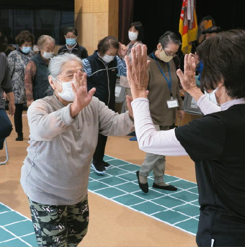 津波古さんがリードしてストレッチを行った後は、参加者の皆さんで自然にプログラムが進んでいきます。