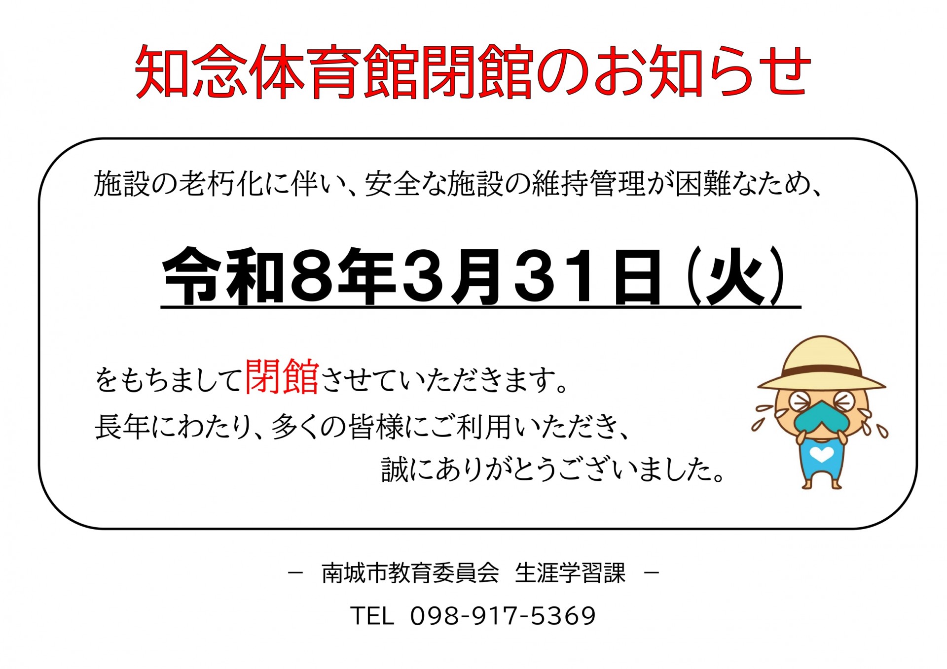 日頃より、知念体育館をご利用いただきありがとうございます。