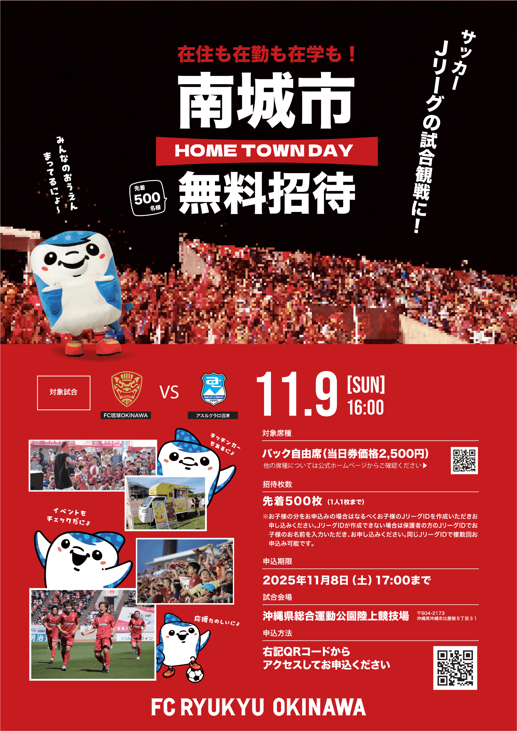 【南城市民デー】FC琉球公式戦に無料招待!!