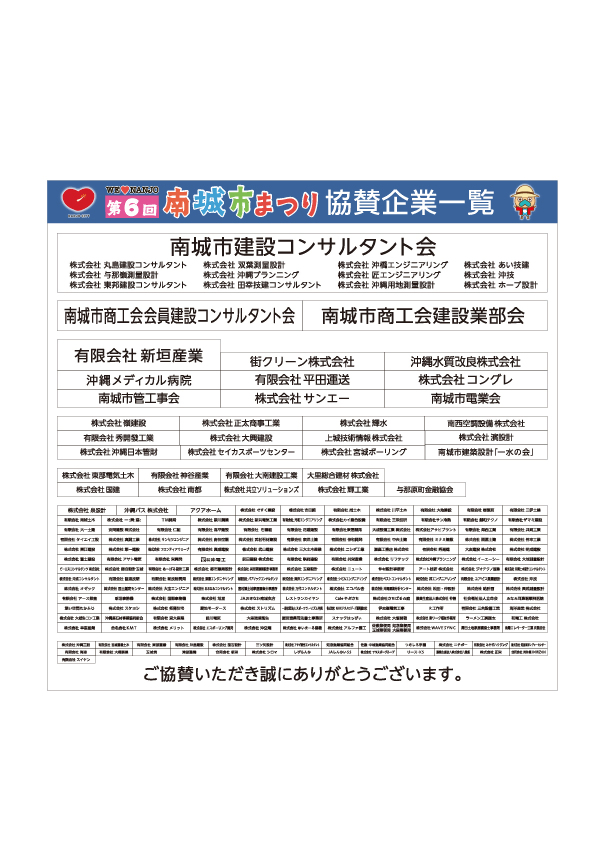 去る11月16日(日)に第6回南城市まつりを開催させて頂きましたところ、市内外から多くの方々にお越しいただき、盛会のうちに終えることができました。